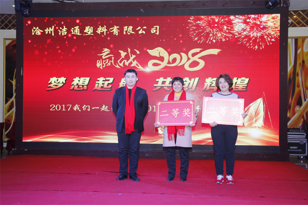 冬去春回又一載,似水流年旺年來(lái)。2018年2月12日下午,滄州潔通塑料有限公司2017年年會(huì)在正達(dá)大西洋酒店隆重舉行。潔通公司全體員工歡聚一堂,在熱情、溫馨、歡樂(lè)的氣氛中回首2017年取得的成績(jī),共同迎接2018年的到來(lái)。